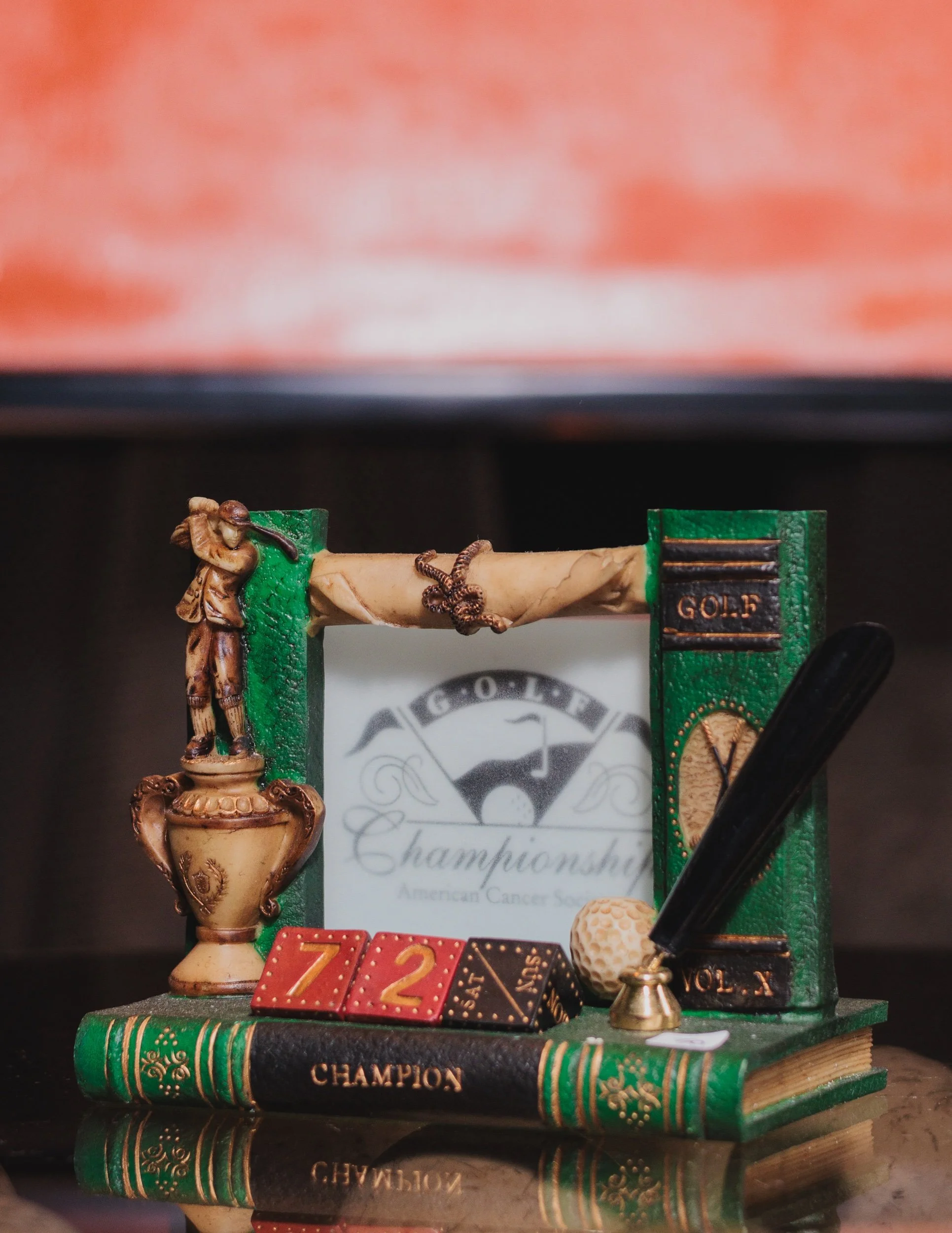 Shop All › Golf Desk Frame and Calendar + Pen Holder Image 1 of 2 Image 2 of 2 Golf Desk Frame and Calendar + Pen Holder $25.00 Quantity: Add To Cart Added!